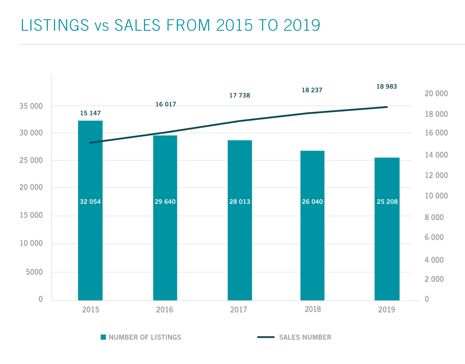 Before venturing into the future, however, let’s look at the present situation: between 2015 and 2019, the number of homeowners planning to sell their homes fell; the number of homes actually listed for sale fell even further – by more than half in 5 years. This can be partly explained by the ever-growing number of home sales.